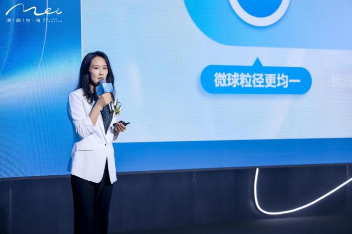 渼颜空间研发副总经理孙敬芳女士以《不止于探索——渼颜空间精研笃行》为题,深入分享了企业在研发领域的坚持与突破。她指出,渼颜空间始终秉持「以终为始,以医为本」的理念,将制药企业的严谨融入医美产品研发,通过优化研发布局、提升科研实力,不断完善产品矩阵。